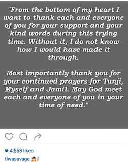 The songstress who took a break from social media since her husband’s posts about their marriage ,returned to Instagram last night,She thanked fans for prayers and support,even thanking them for her husband.. See below:
